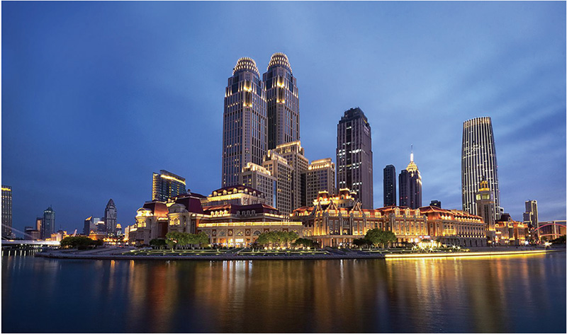 津?yàn)硰V場(chǎng)位于天津市和平區(qū)的一處海河河灣南岸,為緊鄰海河、面向天津站的歐式建筑群。建筑面積17.1萬(wàn)平米,由5座歐式風(fēng)格的地上商業(yè)建筑及地下商業(yè)街、停車場(chǎng)共同構(gòu)成。其建筑風(fēng)格與周邊原租界內(nèi)的歷史建筑一致,為天津金融城的標(biāo)志性區(qū)域。